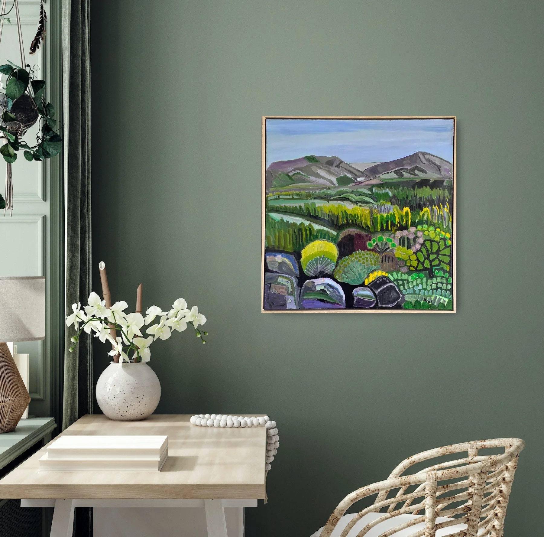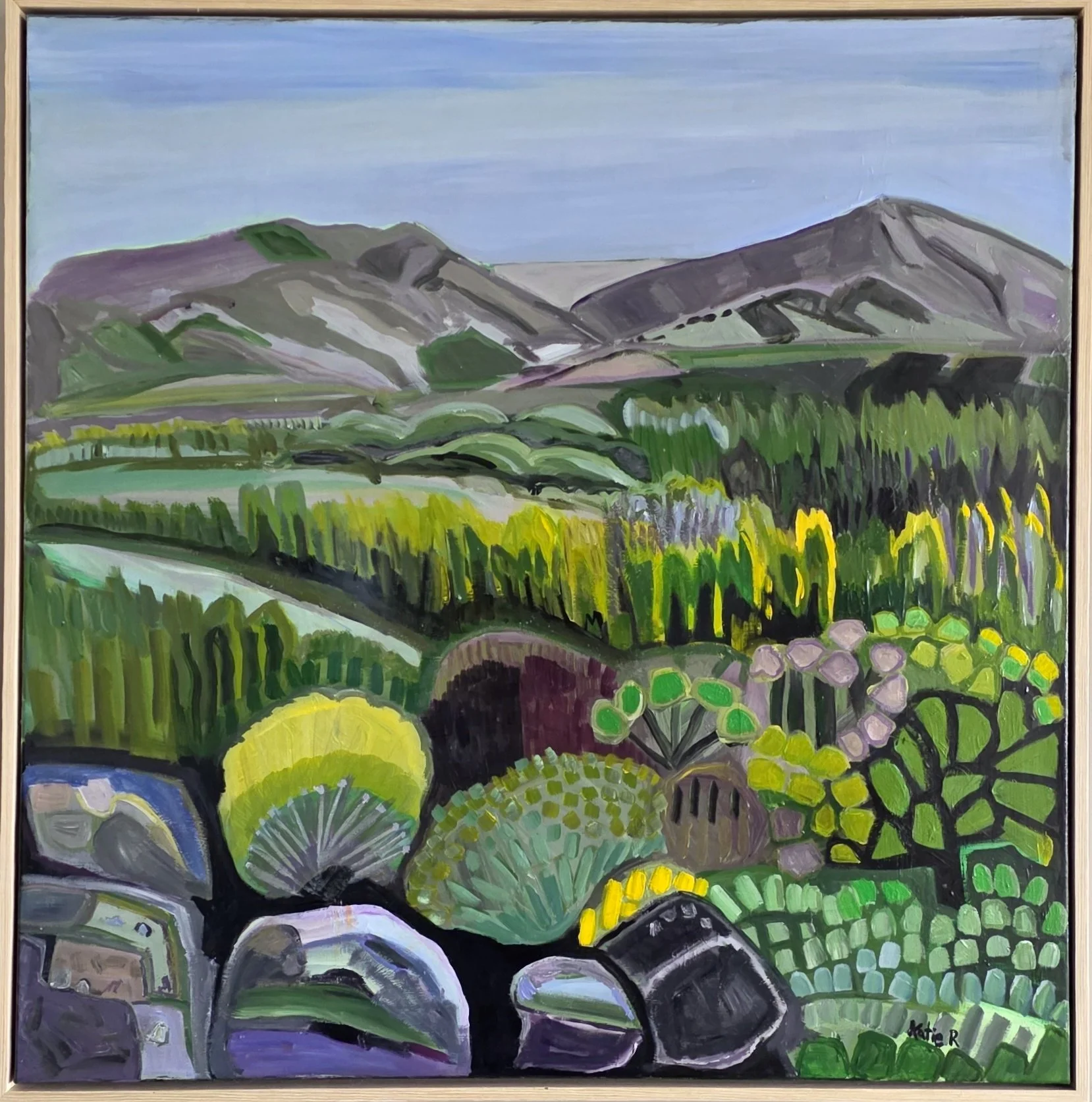 Acrylic on canvas in light wooden tray frame